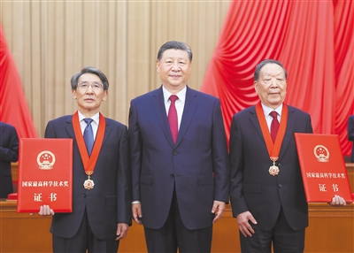 Xi and other Party and state leaders, together with the two winners of the top sci-tech award, presented certificates to other award recipients.