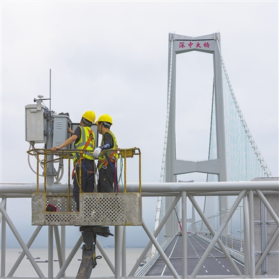 | Engineers examine a 5G base station at the cross-sea passage Shenzhen-Zhongshan link in south China's Guangdong province on June 15, 2024. (PHOTO: VCG) |