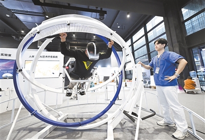 | A visitor experiences a multisensory art therapy system integrated with AIGC technology at the Light of Internet Expo held during the 2024 World Internet Conference in Wuzhen, Zhejiang province. (PHOTO: VCG) |