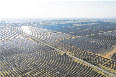 | China has built large-scale photovoltaic installations in the Inner Mongolia autonomous region to solve desertification within the Three-North Shelterbelt Program. (PHOTO: XINHUA) |