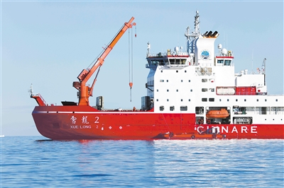 | Chinese research icebreaker Xuelong 2, or Snow Dragon 2, unloads materials near China's Qinling Station in Antarctica, December 27, 2024. Xuelong 2 and cargo vessel Yong Sheng, which are on China's 41st Antarctic expedition, arrived at China's Qinling Station in Antarctica on December 25, 2024 and carried out unloading operations. (PHOTO: XINHUA) |