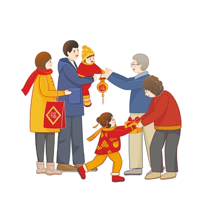 During the Spring Festival, all the family members will gather together to celebrate the upcoming new year, and give gifts among the family members.