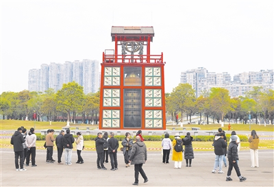 | On January 26, 2024, people visit the Water-driven Astronomical Clock-tower in Xiamen's Su Song Park. (PHOTO: VCG) |
