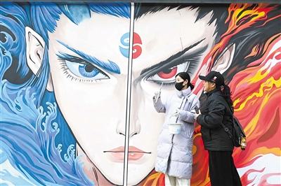 | The Chinese animated film Ne Zha 2 has become the highest-grossing animated movie of all time globally. The photo shows a "Ne Zha"-themed wall painting in Shijiazhuang city, north China's Hebei province, February 19, 2025. (PHOTO: XINHUA) |