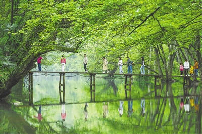③ Tourists enjoy the scenery in Xixi South Wetland, Huangshan city, Anhui province.