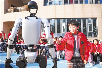 ④ Kindergarten children interact with a robot up close at a science popularization event in Ningbo city, Zhejiang province.