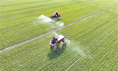 | This aerial drone photo taken on February 19, 2025 shows farmers working in the field in Qiaocheng district, Bozhou city, east China's Anhui province. Farmers in many regions of China are busy in the fields with spring ploughing, sowing and other agricultural activities. (PHOTO: XINHUA) |