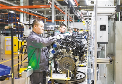 | Workers of a technology firm step up production of new energy vehicle range extenders in the workshop located in Sichuan province on March 6, 2025. (PHOTO: VCG) |