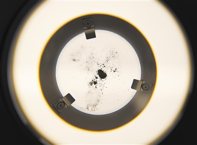 | This photo taken on April 13, 2025 shows the lunar soil sample collected by China's Chang'e-5 mission displayed in the China Pavilion at the Osaka Expo in Osaka, Japan. (PHOTO: XINHUA) |