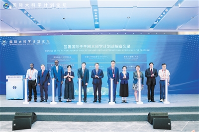 | ▲ Representatives from the Scientific Committee on Solar-Terrestrial Physics International Science Council, National Space Science Center, Chinese Academy of Sciences, and other institutions, pose for pictures at the signing ceremony of the memorandum of understanding for the International Meridian Circle Program on June 12. |