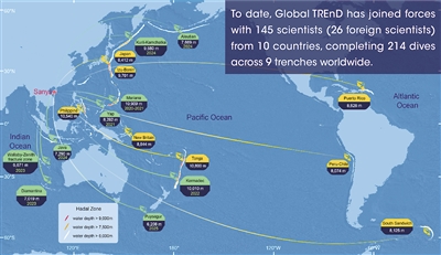 The Global Trench Exploration and Diving Program (Global TREnD) is a global endeavor to explore the deepest parts of the world's oceans — the hadal zone (6,000-11,000 m), and advancing the multi pipeline knowledge of hadal biology, geology and environment science by using the technology of full ocean depth manned submersibles.