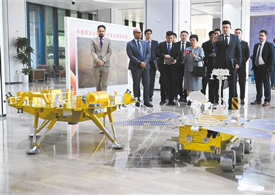| The International Deep Space Exploration Association (IDSEA), an international academic organization dedicated to deep space exploration, is launched on July 7 in Hefei city, Anhui province. Photo shows guests at the exhibition room of the Deep Space Exploration Laboratory, one of the initiators of the IDSEA. (PHOTO: XINHUA) |