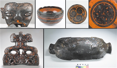 | The pictures show lacquerware unearthed from the Wuwangdun tomb. (PHOTO: Anhui Provincial Cultural Relics and Archaeology Research Institute & XINHUA) |