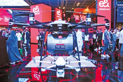 | Photo shows an intelligent unmanned aerial vehicle at an exhibition held in Dubai, United Arab Emirates. (PHOTO: XINHUA) |
