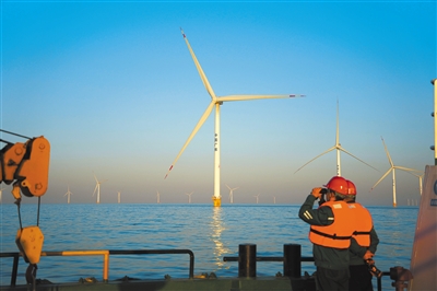 | The photo taken on January 7, 2025, shows the offshore wind power project area of Laizhou city, Shandong province. (PHOTO: XINHUA) |