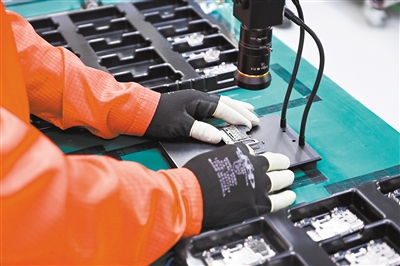 | A worker inspects motherboards at OPPO's mobile phone factory in Manaus, Brazil. (PHOTO: XINHUA) |