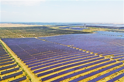 | The photo shows a photovoltaic base located in Dalad Banner in the city of Ordos, north China's Inner Mongolia autonomous region. (PHOTO: XINHUA) |
