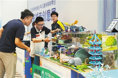 | Visitors view creative models at an exhibition themed "Future City." (PHOTO: HONG Xing / Science and Technology Daily) |