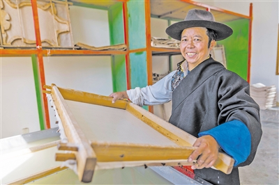 Located at nearly 4,000 meters above sea level, Awang Quyang, 46, is testing a new plant-based dye for Tibetan paper. As a fifth-generation inheritor of the Zhigong Gaxiu Tibetan papermaking technique, listed as a municipal-level intangible cultural heritage in Lhasa, he has helped adapt the ancient craft for modern use.