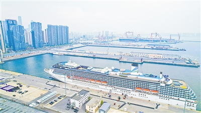 | The cruise ship Adora Mediterranea docks at a port in Dalian, northeast China's Liaoning province. (PHOTO: XINHUA) |