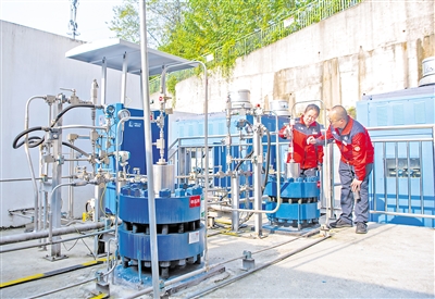 | Workers conduct safety inspections in a hydrogen refueling station in southwest China's Chongqing. (PHOTO: XINHUA) |